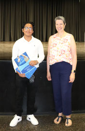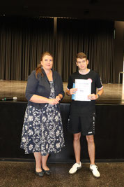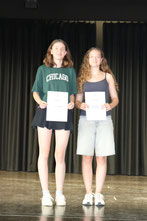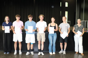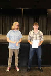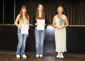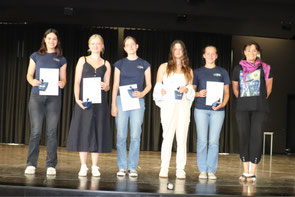 Silke Baer und Andrea Höhmann würdigten anschließend die MINT-Preisträger Felix Müller (Mathematik, Informatik, Physik), Colin Trietsch (Informatik), Jonas Sieber (Informatik), Solvej Schönfelder (Informatik, Physik), Hannah Siats (Chemie, Physik), Clemens Stracke (Chemie), Alessia Jung (Physik), Marie Zschiegner (Physik), Till Appler (Physik), Noemi Szabo (Physik).